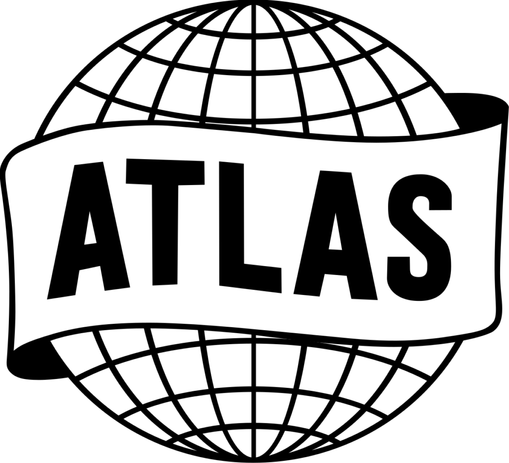 The Atlas Comics logo introduced a globe symbol with a wide banner across it. The bold “ATLAS” lettering was clear and easy to read, while the globe suggested scale and reach. The design was simple but strong, relying on symbolism rather than decoration.