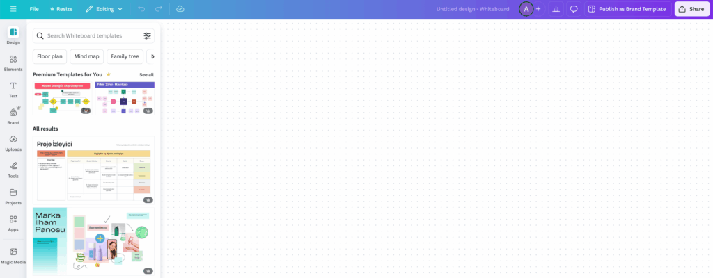 - Templates: Explore thousands of categorized templates, from social media and presentations to infographics and brochures.
