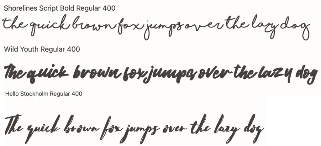 • A handwritten script may mimic cursive rhythm while allowing slight letter separation.