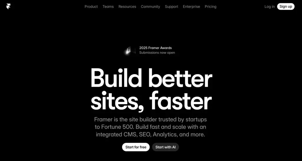 Framer cuts through the noise for one reason: speed. When you need a marketing site live in days, not weeks, and design quality can’t suffer, Framer delivers. Teams use it for product launches, SaaS sites, and brand experiments where iteration happens constantly and content structure stays light.